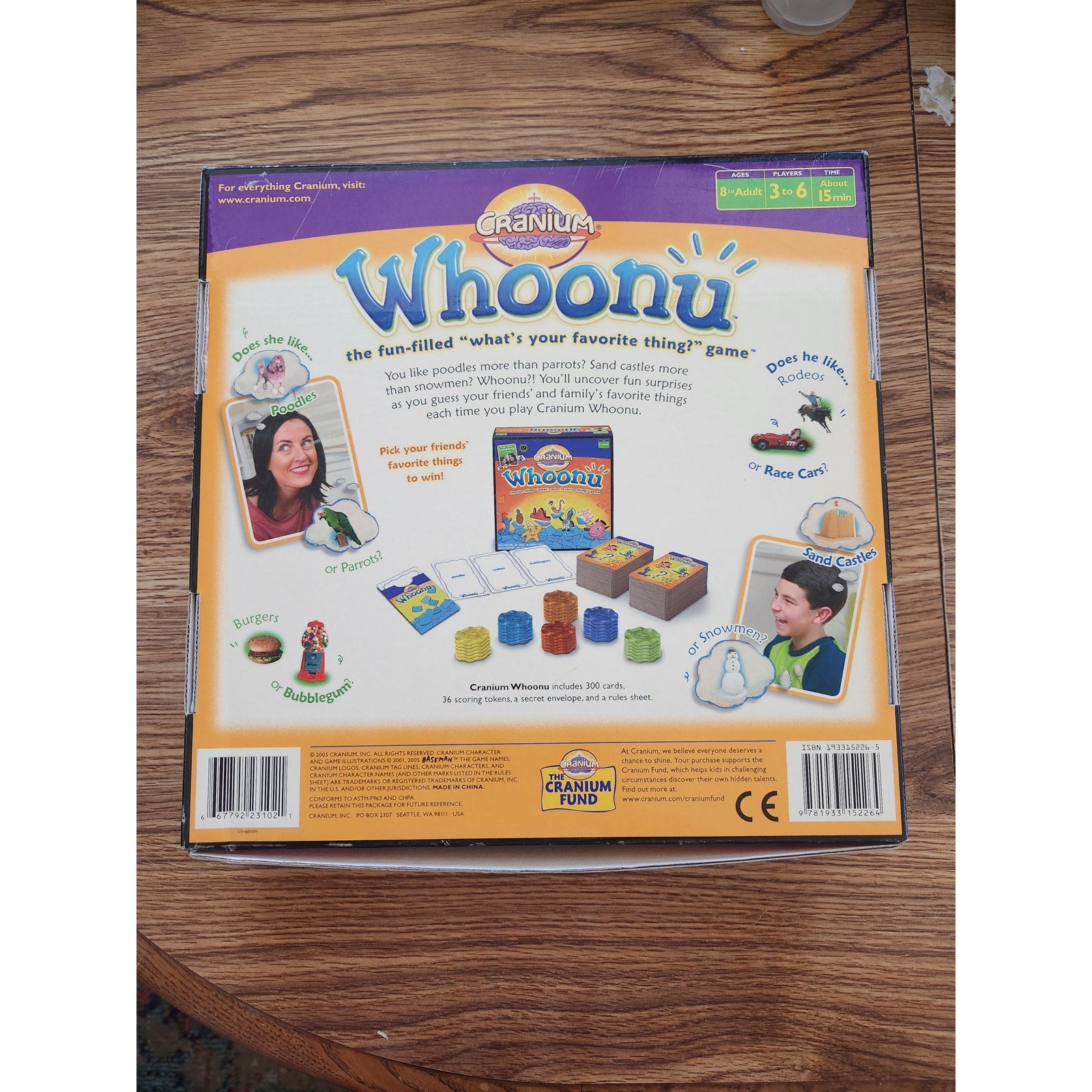 What a fun discovery for your game shelf! You've just stumbled upon a used but complete copy of Whoonu by Cranium, the "what's your favorite thing?" game. This is a fantastic find for anyone looking to add a hilarious and easy-to-learn game to their family game night rotation.